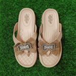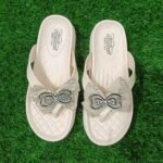 আরামদায়ক ও ফ্যাশনেবল ভি-স্ট্র্যাপ ফ্ল্যাট স্যান্ডেল, উপরে রয়েছে ঝলমলে পাথর দিয়ে তৈরি বো ডিজাইন। দৈনন্দিন ব্যবহার, আউটিং কিংবা পার্টির জন্য উপযুক্ত।